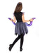 • Dress features layered black and purple raw cut skirt, with glittery material and tulle overlay