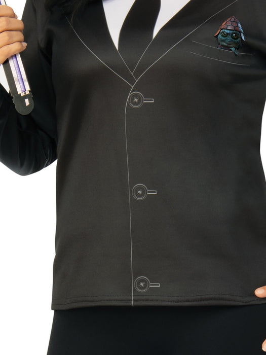 • Costume top in polyester with digital print on front including alien in pocket as well as tie, lapels, shirt front and buttons