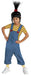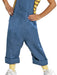 • Denim-look jumpsuit with attached stripey yellow undershirt and printed front pocket. Jumpsuit has velcro closures at rear