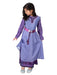 • Digitally printed A-Line purple dress featuring clasped "hitch" at the front of the skirt showing the beautifully embellished underskirt