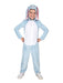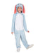 • Onesie jumpsuit features an attached hood with 3D fiber filled rabbit face and long floppy ears with pick inserts