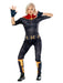 • Digitally printed jumpsuit with metallic foil printed star emblem on chest and features a stand-up collar as well as printed shin armour and 3/4 length sleeves