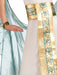 • Dress with attached large gold belt showing ornate embellishments in sequins
