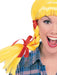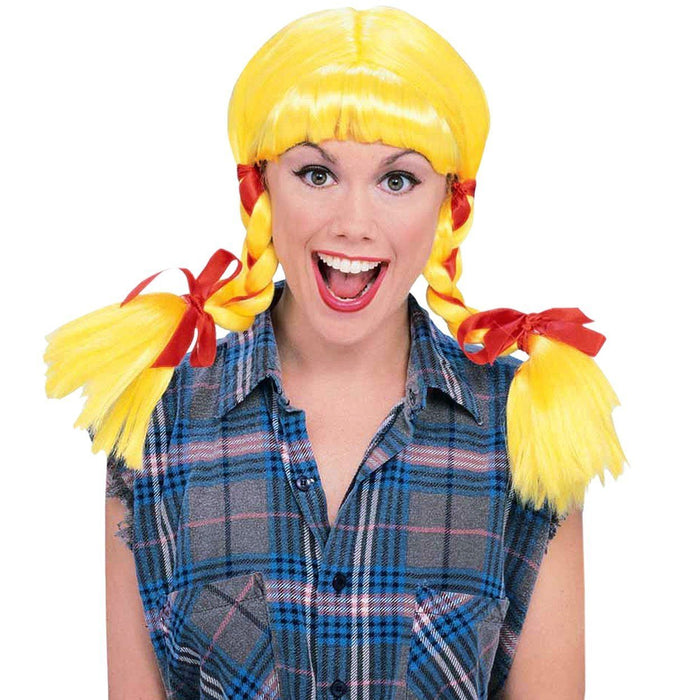 • Wig is parted in the middle with two side plaits and a thick fringe