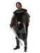 • Detachable cape adheres to tunic at shoulders and features faux fur