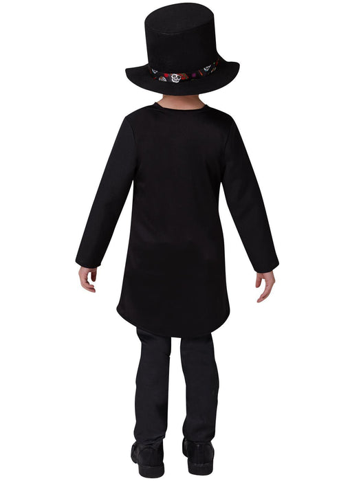 Show off his deadly debonair looks with style in this Day of the Dead Costume which features a jacket attached shirt insert, rose accents and top hat.