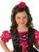 • Dress with satin bodice, mock undershirt with crossover ties and lace loops plus attached waist sash and fabric rose