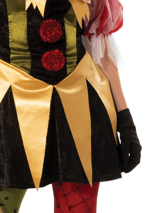 Clowns are commonly known for being funny and friendly, however, not all clowns are quite so lovable. This is a clown costume with a little bit of an edge. Accessorise her up to be just a little bit dark, or everyone's worst nightmare... a perfect choice for Halloween!