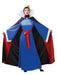 • Black cloak with satin finish and firm moulded white collar plus clasp with red faux jewel