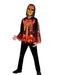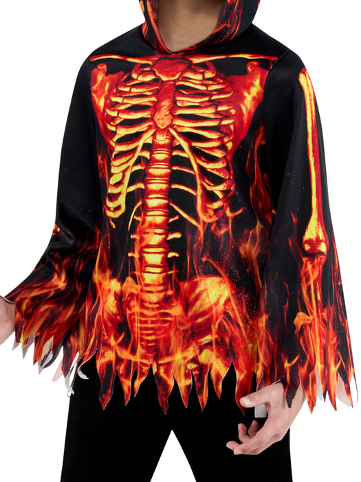 • Hooded Costume top with printed firey red ribs, bones and skeleton