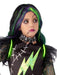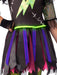 • Layered Mini Dress with tattered edging, sewn on patches and printed glittery lightning bolt and stitches. Green shoulder piping, waistband piping and the lightning bolt light up using small battery pack sewn within skirt seam