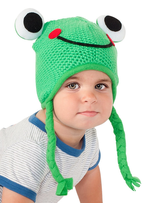 • Soft woollen beanie with attached froggy face feature and large 3D eyeballs