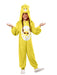 • Plush all in one bright yellow jumpsuit with front zipper closure and trademark belly badge of a sun in the centre of the tummy
