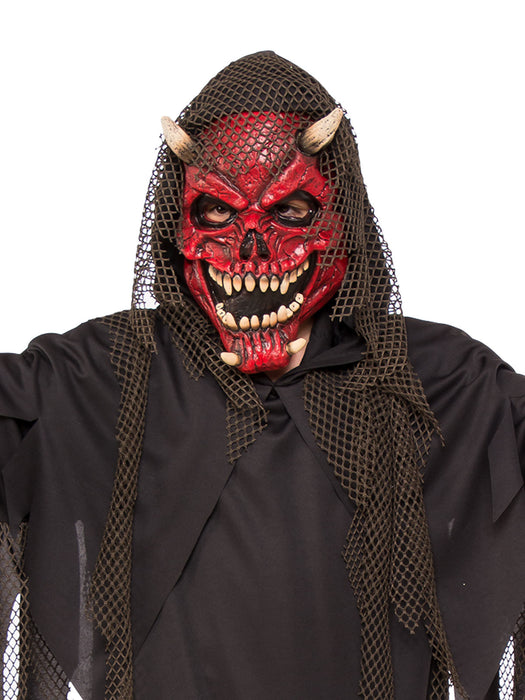 • Moulded mask features demon face and horns in painted detail and cut out eye holes to see through