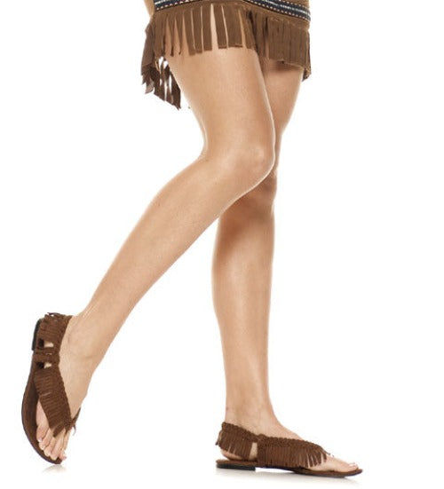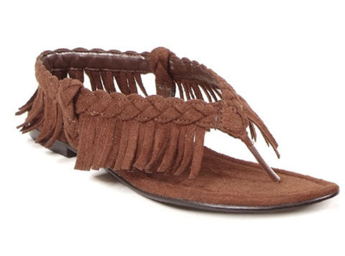• One pair of Native American style fringe sandals with faux suede and flat soles