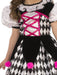 • Headband with 'Fool's Hat' on top and satin ruffle with black trim plus pink bow decorations