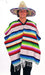 • Oversized polyester red and rainbow coloured serape in poncho style with slit for neck and open sides for arms