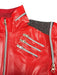 • Deluxe vinyl, leather-look red trademark Beat It jacket with front zipper closure