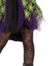 • Black, green and purple mini dress with feature criss-cross design at bodice and spider webbing tulle peplum at the skirt