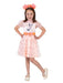 • Dress features a shimmery orange-pink waistband with attached bow plus matching foam filled 3D shimmery ears on a headband