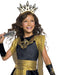 • Attached to the dress are shiny, glittery gold wraps at the shoulders and waistline