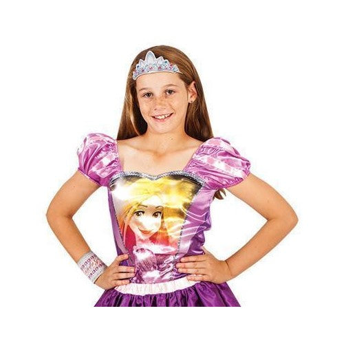 “Rapunzel, Rapunzel, let down your hair!” yells the dashing Huntsman Flynn Ryder. The Princess of Disney’s animated film “Tangled” (2010) with the famous long blonde, magical hair, Rapunzel’s story was inspired by the beautiful fairy tale from the Brothers Grimm. With chameleon friend Pascal by her side, she is locked in Mother Gothel’s secluded tower, awaiting her freedom. And along rides the rugged Eugene on his side-kick horse Maximus, to win the heart of the golden Princess. Together they must escape Rapunzel’s wicked mother and Eugene’s criminal past. For every girl who dreams big, there is a Princess to show her the way. So start living and achieving your dreams in this radiant Rapunzel costume top. Only you have the choice Princess, start living now!