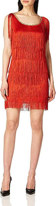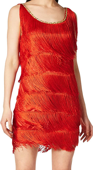 They were called the roaring 20's as it was a time of prohibition and sometimes even inhibition. Girls would wear flappers like this red Flapper dress, that had the classic layered fringe, with gold sequin trim. The ladies embraced all things that were modern, sexy and extremely fashionable. The very short dresses that exposed her arms and most of her legs, and the cute short, sleek hair.