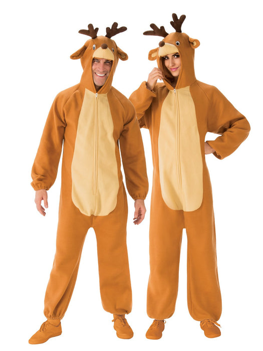 • Onesie features attached hoodie with 3D ears, eyes and antlers
