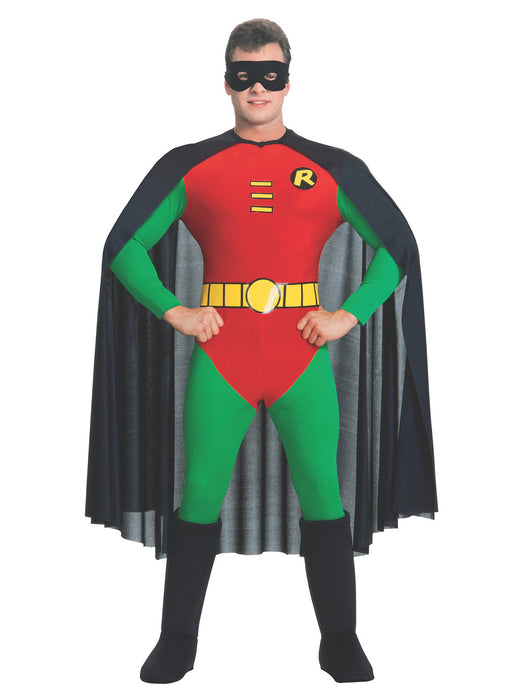 Holy crime-fighting, he is part of the infamous Dynamic Duo! Often referred to as Boy Wonder and Batmans side-kick, Robin has taken on many identities and characters throughout the esteemed history of DC Comics. Best known as the young hero assisting Batman in saving Gotham City from the many supervillains, he is also reincarnated as Nightwing and Red Hood. Dick Grayson has appeared as Robin in a long list of TV shows, movies and video games. Also a member of the Teen Titans Go! Team, he can be seen in blockbuster films by Warner Bros like Batman & Robin (1949), Batman Forever (1995) and Batman: The Brave and the Bold (2008).  You'll look amazing dressed as the Boy Wonder, the Caped Crusader's sidekick, roaming the streets of Gotham to keep peace and fight crime!