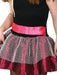 • Tutu dress with tulle overlay on satin skirt and attached pink satin belt