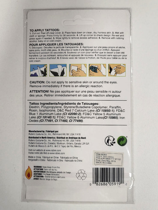 • One large temporary tattoo