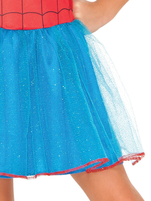 • Tutu dress with digitally printed bodice showcasing the iconic spider emblem and red and blue panels