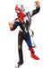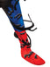 • Digitally printed jumpsuit with new wet-look material and fibre filled muscle chest and stitching. Jumpsuit is half Venom in black and half Spider-Man in blue and red and features attached boot covers