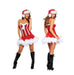 This sexy Santa costume consists of a red stretch mini dress with chandelle trim. A large white bow attached to the outfit lets everyone know you're the best present under the tree.