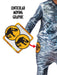 • Digitally printed blue-grey toned jumpsuit with velcro closures at rear and attached stuffable tail